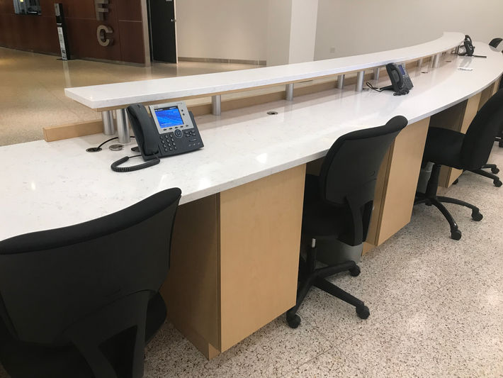 RKA PLLC was hired to modify an existing coat check space and storage room into a new primary check in and reception desk for one of the largest buildings in High Point, North Carolina.