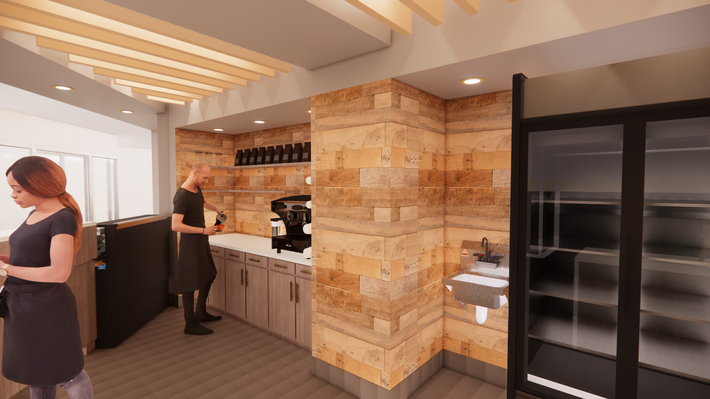 Situated on a main circulation path between the World Market Center buildings, this corner café was a needed addition to the hospitality services provided during Market. WMC wanted to provide easy food and drink options for visitors. With two service stations, the A Café is now prepared to give guests quick grab-and-go options while they enjoy their Market experience, including a selection of dry goods, refrigerated meals and cold drinks or fresh coffee.